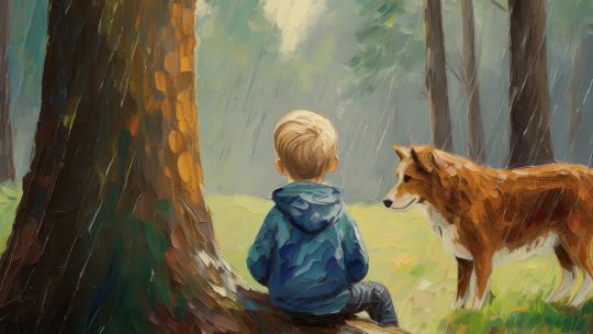There was no safe place in the entire world from the rain of stars. The fox fled to the one place he knew, the one place he remembered, where he had felt safe and secure and happy. He ran to the mountain and the cave near the watching giant.