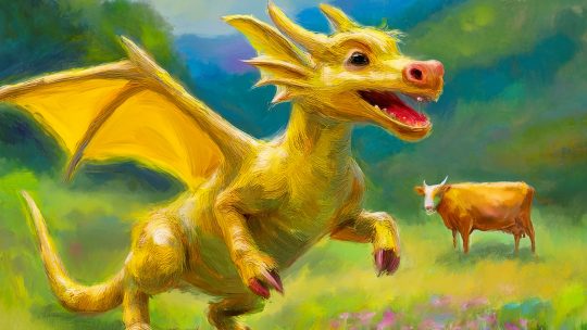 Long, long ago, in the days when dragon songs still filled the air, there was a beautiful, golden dragon named Clarissa. She exercised her wings each day and dreamed of the time when she would be big and strong, so she too could fly all the way down...